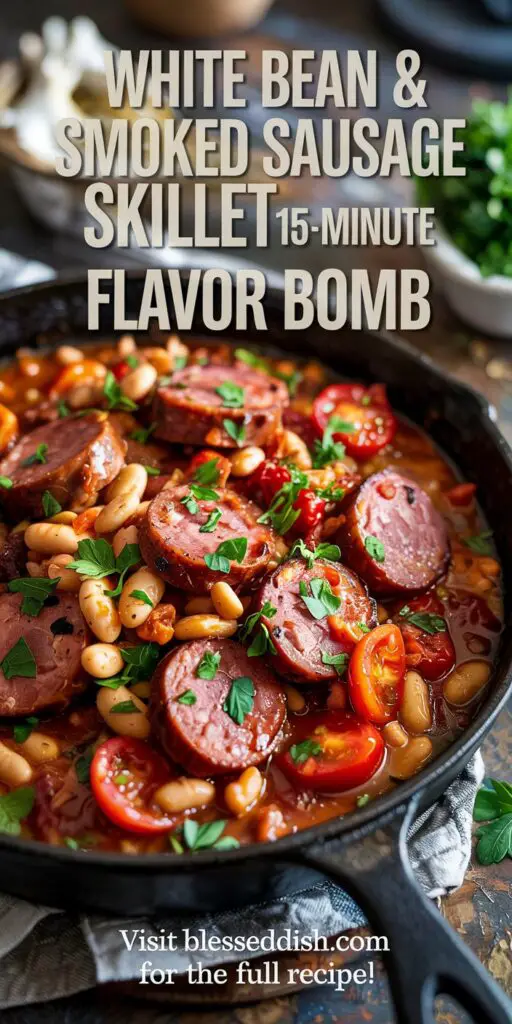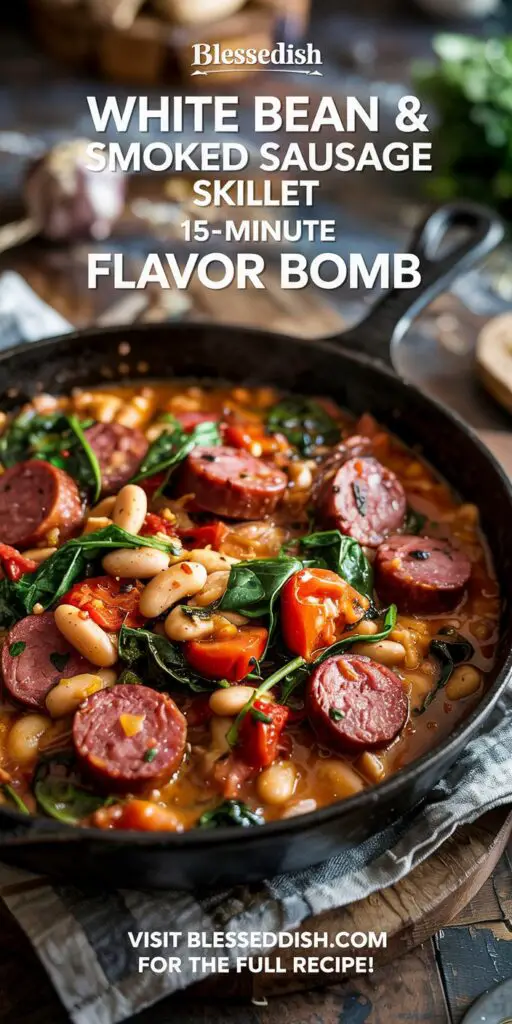 Take a moment to savor the smoky, savory richness of this white bean smoked sausage skillet—all in one pan and just 15 minutes. Whether you’re feeding a crowd or enjoying solo, this dish delivers comfort, nutrition, and unbeatable ease. Ready to simplify your dinner routine? Give it a try tonight, snap a photo of your creation, and share your favorite tweaks in the comments below. Don’t forget to subscribe for more one-pan wonders and speedy weeknight recipes!