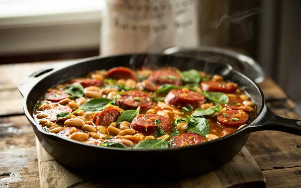 - Flavor Harmony: Smoky sausage grounds the dish; white beans lend creaminess; herbs and greens add freshness.