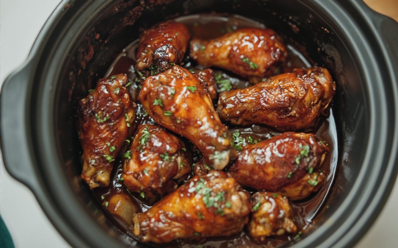 - Pour & cook: Pour the sauce over the drumsticks, turning to coat. Cover and cook on LOW for 6–7 hours or on HIGH for 3–4 hours, until tender and cooked through (meat pulls from the bone).