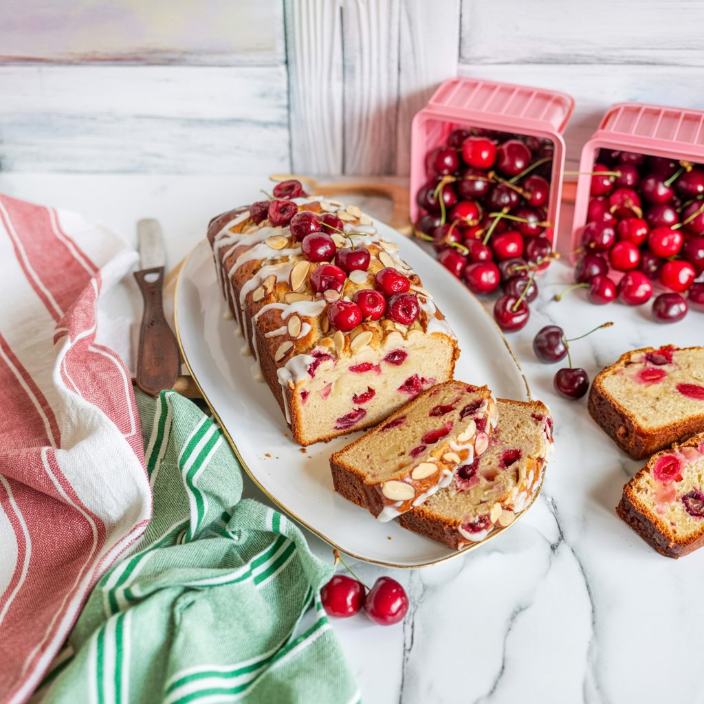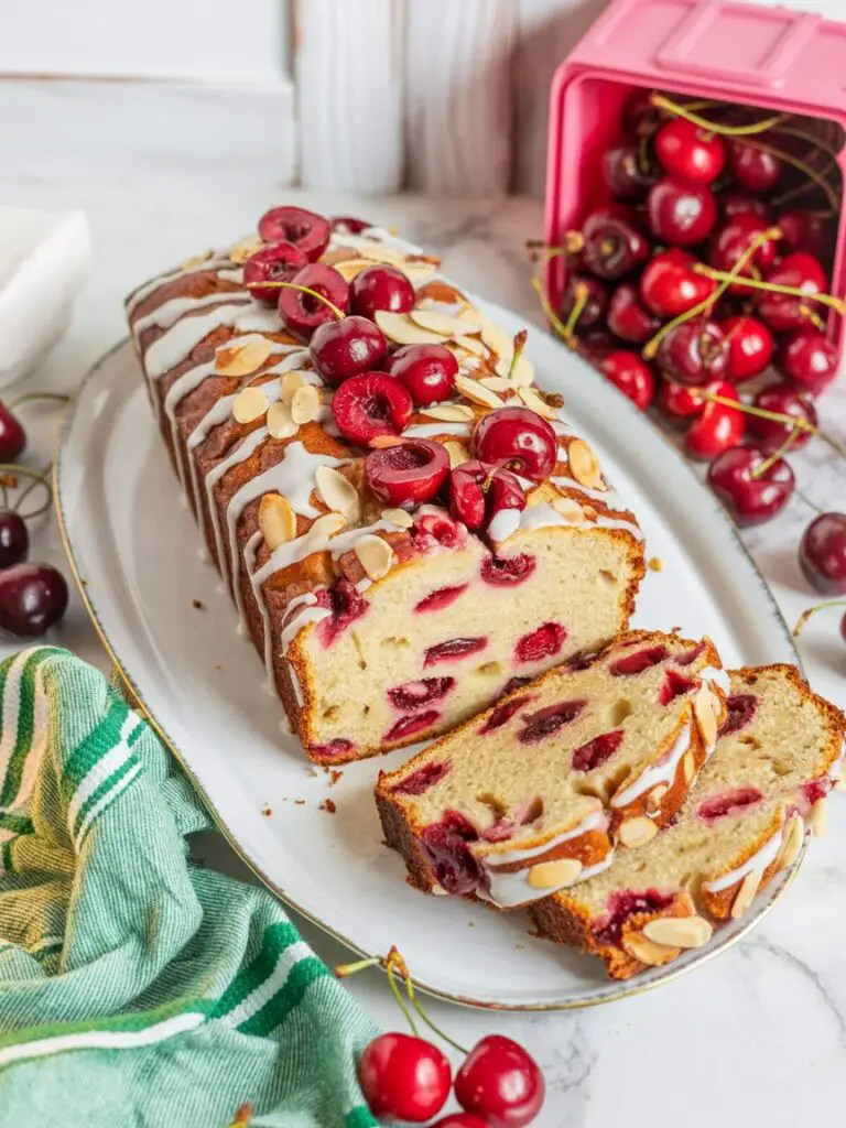Bursting with juicy cherries and fragrant almond, this tender quick bread is enriched with Greek yogurt and buttermilk for extra moisture. A simple almond glaze on top turns each slice into a dreamy, nut-studded treat perfect for breakfast, brunch, or an afternoon snack.
