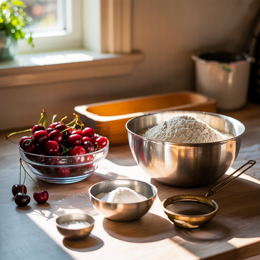 - 1 tbsp Corn starch (Toss with cherries to prevent sinking)