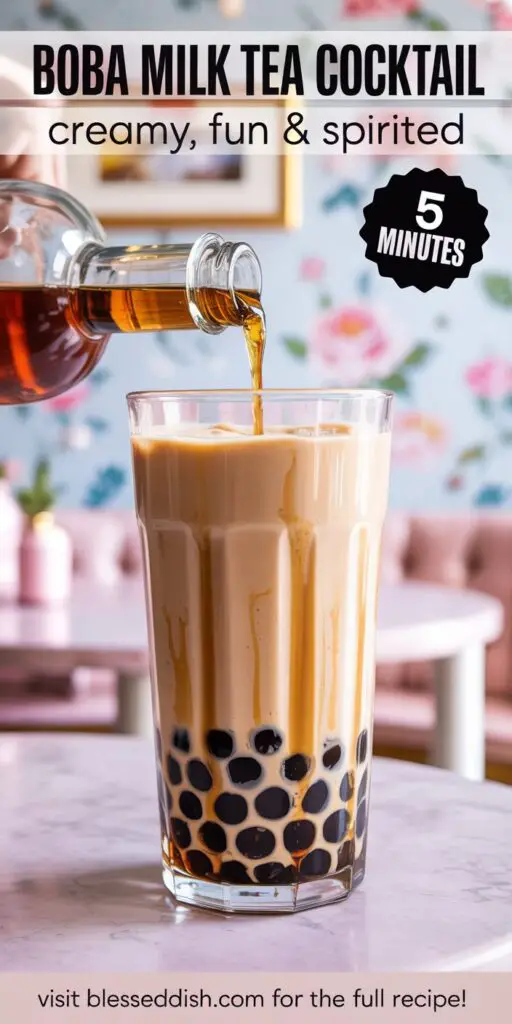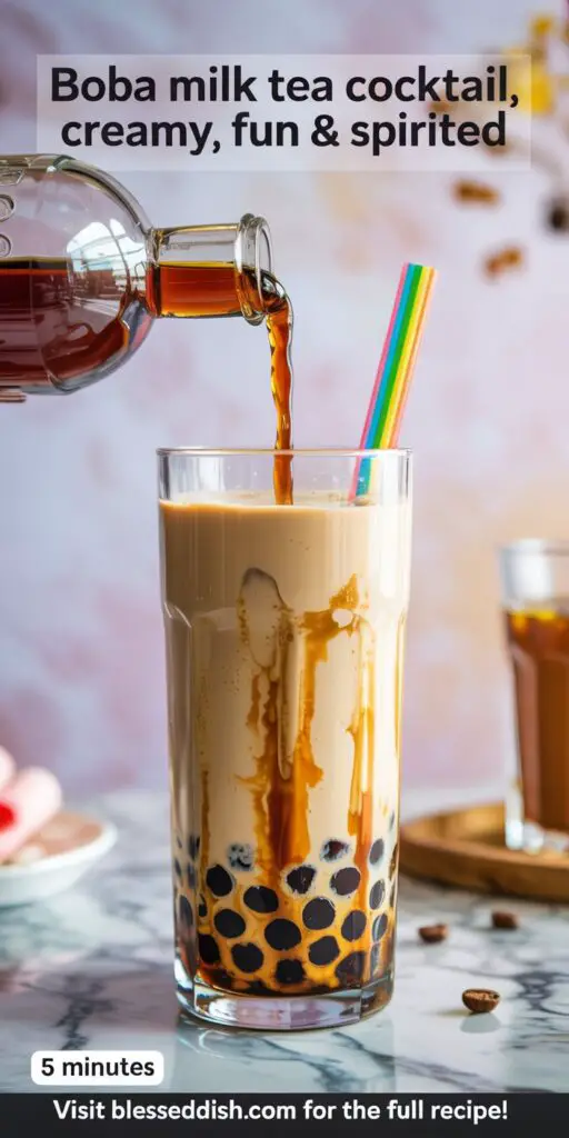 You now have the ultimate boba milk tea cocktail recipe that transforms your favorite bubble tea into an adult-friendly indulgence—complete with creamy milk, chewy tapioca pearls, and the warming embrace of dark rum. With minimal prep, you can host an at-home café-style happy hour or enjoy a playful nightcap that feels both nostalgic and novel. Gather your ingredients, brew that tea, and let the pearls be the life of the party. After sipping this textured delight, share your feedback below, rate the recipe, and subscribe for more globally inspired, data-driven cocktail creations!