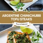Slice the pressed tofu into ½-inch thick “steaks.” Transfer the pieces to a shallow dish and spoon the chimichurri over them, making sure each tofu steak is completely coated. Cover and chill for at least 30 minutes.