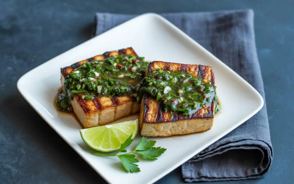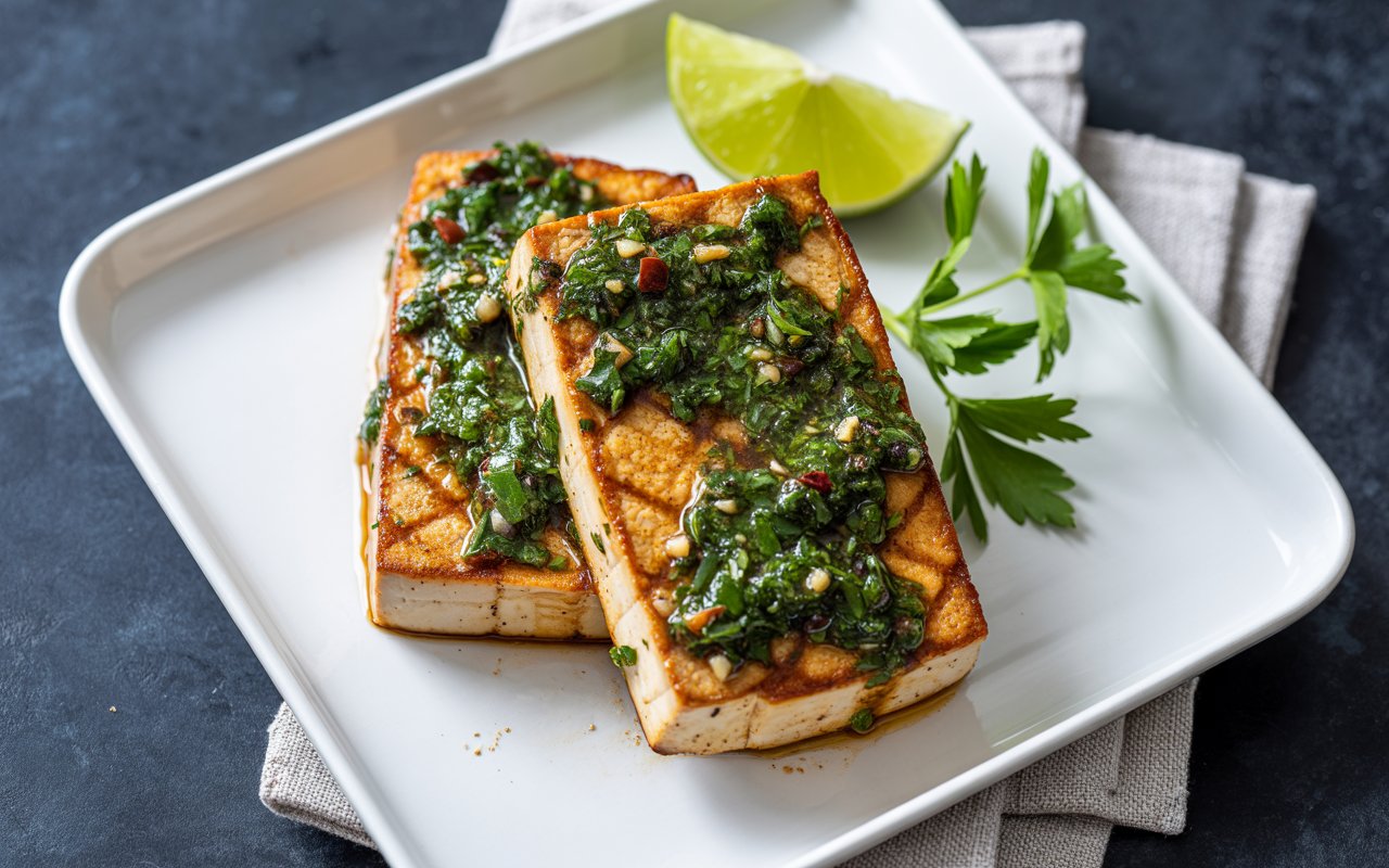 Place each tofu steak on the hot grill. Cook for 4–5 minutes per side, turning only once. You’re aiming for distinct grill marks and a slight blister on the edges. Baste with any remaining chimichurri halfway through for extra herbaceous depth.