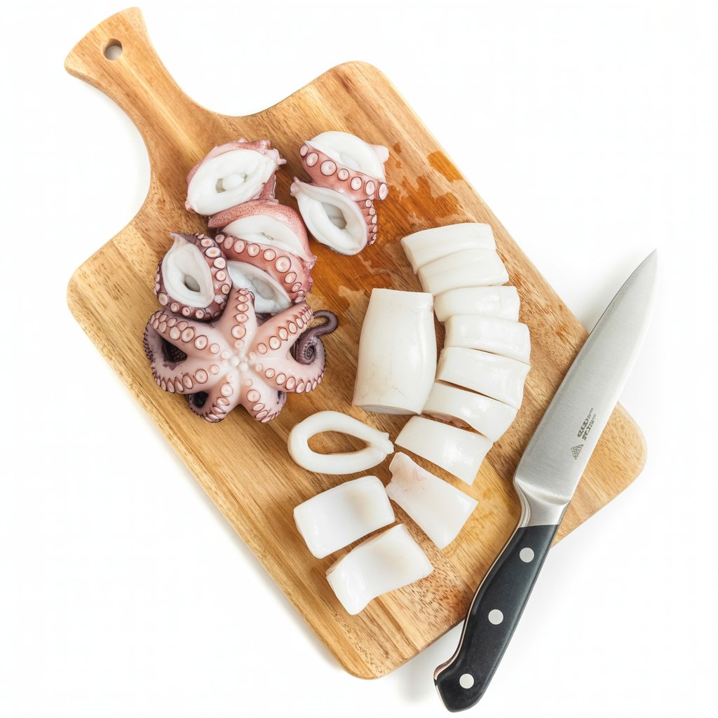 | Squid | 300g (⅔ lb) | Baby or large, cleaned and cut into rings, tentacles left whole. |