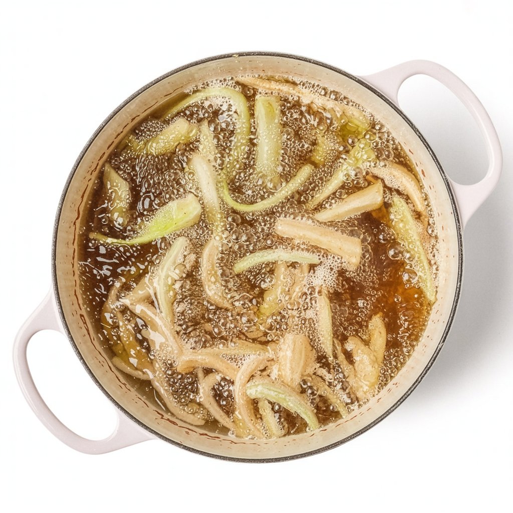 Pour your neutral oil into a large, heavy-bottomed pot or Dutch oven until it is about 2 inches deep. Heat the oil over medium-high heat until it reaches 180°C (350°F). Use a cooking thermometer for accuracy. While the oil heats, line a large baking sheet with paper towels for draining the fried items.
