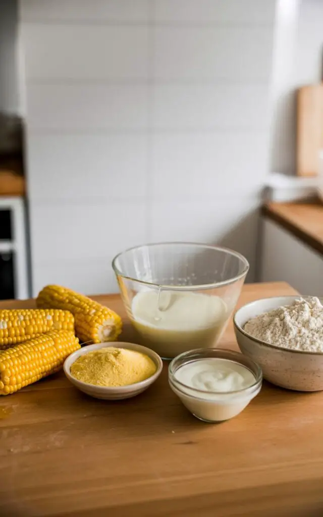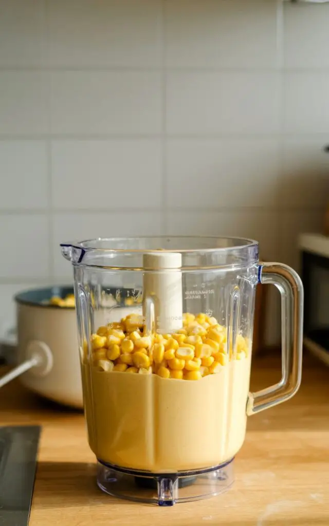- Blend & rest: In a blender, combine corn kernels, cornmeal, condensed milk, and yogurt. Blend until smooth (15–20 seconds), then let stand 10 minutes so the cornmeal hydrates.