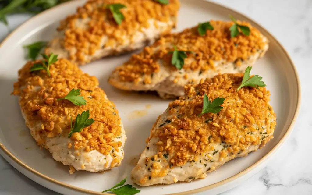 Place the baking dish in your preheated oven and bake for 25-30 minutes. You’ll know it’s done when the chicken’s internal temperature reaches 165°F (74°C) on a meat thermometer, and the topping is golden brown and bubbly. Let it rest for 5 minutes before serving—this allows the juices to redistribute for maximum tenderness. Garnish with fresh chopped parsley for a pop of color and freshness.