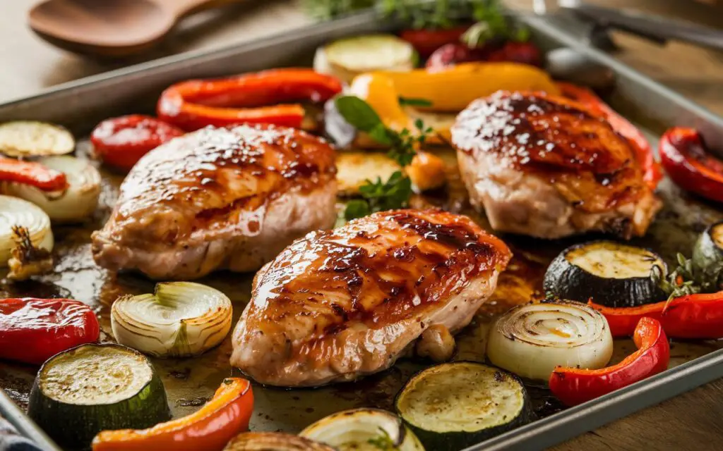 This dish is designed not only to please the palate but also to simplify your mealtime routine. With minimal cleanup and maximum flavor, it’s a versatile option that can be easily adapted to suit various dietary needs or personal tastes. The combination of lean protein, a wealth of vitamins and minerals from the vegetables, and the antioxidant-rich balsamic glaze makes this meal both satisfying and nutritionally robust. Whether served as a main course for a family dinner or as a hearty meal prep option for busy weeknights, Balsamic Glazed Chicken & Veggies offers a delightful blend of comfort, convenience, and culinary excellence.