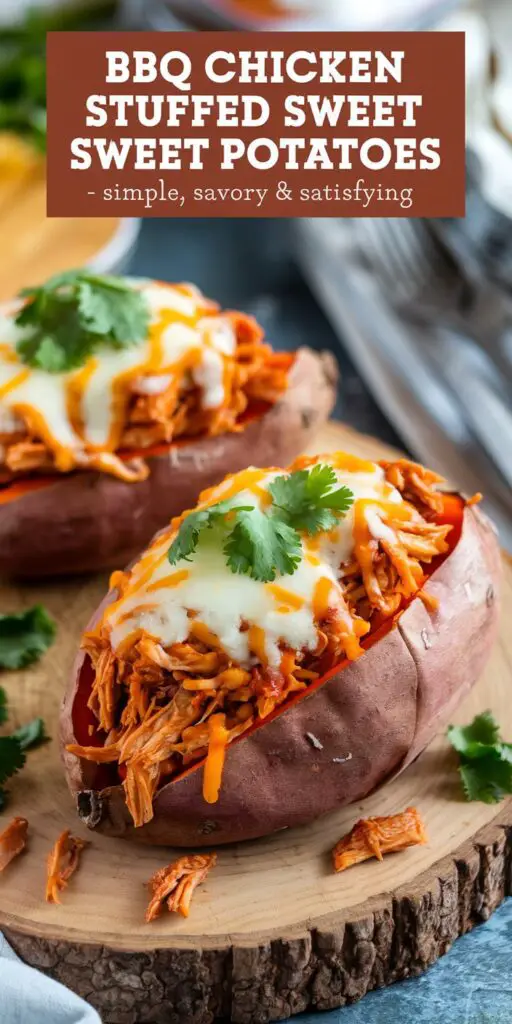 Bringing the sweet warmth of a baked sweet potato together with smoky, tangy barbecue chicken yields these BBQ Chicken Stuffed Sweet Potatoes—a dish that defies the typical notion of a baked spud as just a side. Every forkful unites the sweet-savory harmony from the potato with the luscious barbecue-laden chicken, ensuring a straightforward but satisfying meal. Whether you aim for quick leftover repurposing or a from-scratch dinner focusing on lean protein and wholesome carbs, these stuffed potatoes rarely disappoint.