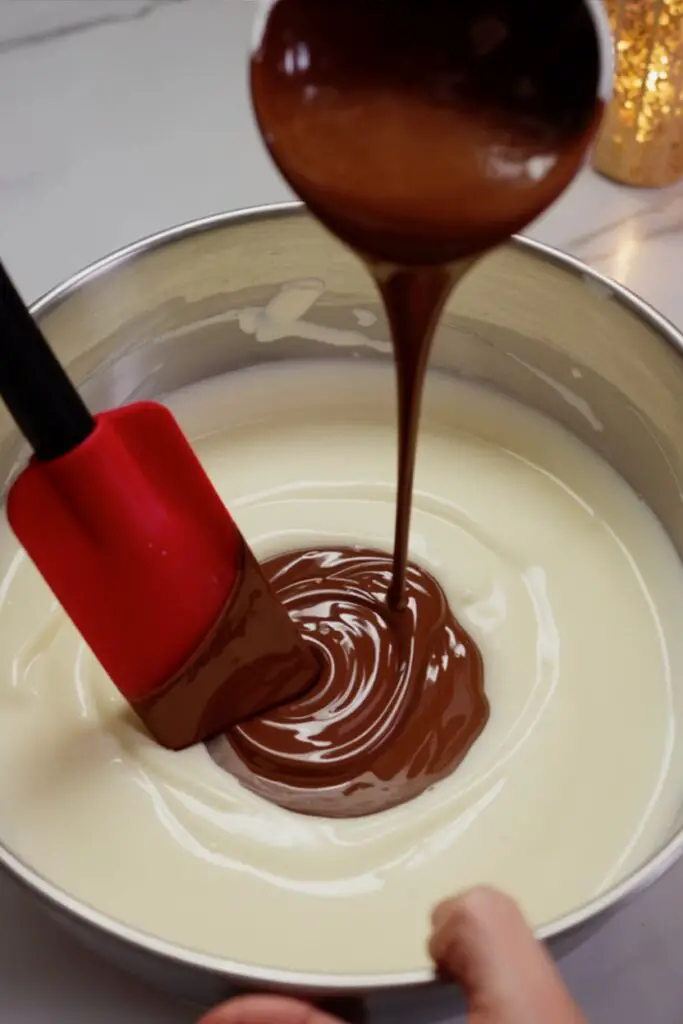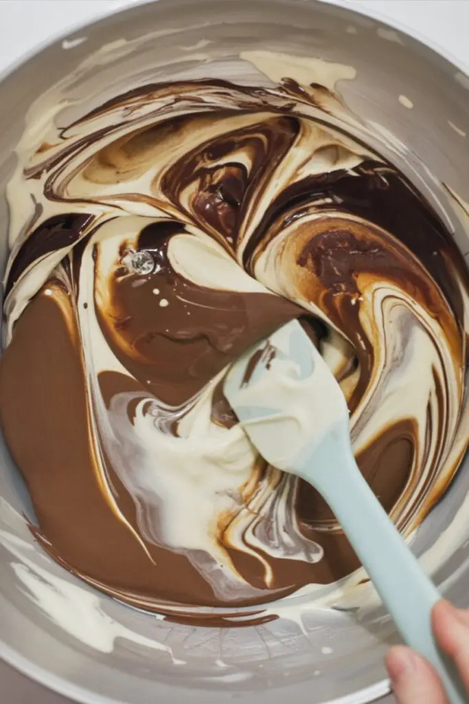 - Create Chocolate Batter: Pour about half of the cheesecake batter into a separate medium bowl. Melt the semi-sweet chocolate (in 30-second microwave bursts, stirring in between) and let it cool for 5 minutes. Fold the cooled, melted chocolate into one bowl of batter until smooth.