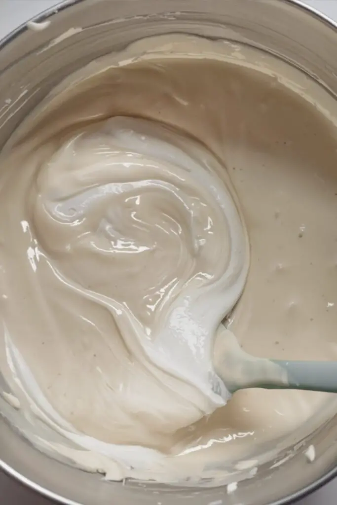 Scrape down the sides of the bowl one more time. Add the room-temperature sour cream and mix on low speed just until it’s combined and no streaks remain.