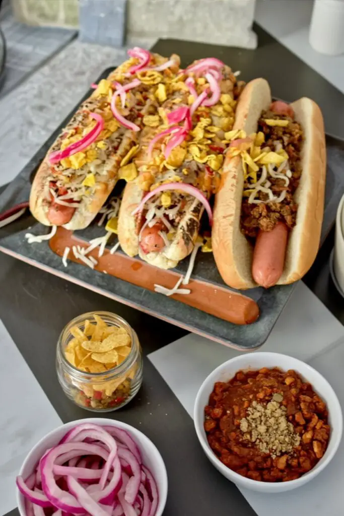 - Topping Bar: Set out the toppings—cheese, Fritos, pickled onions, plus diced jalapeños, sour cream, and fresh cilantro—and let guests build their own perfect coney.