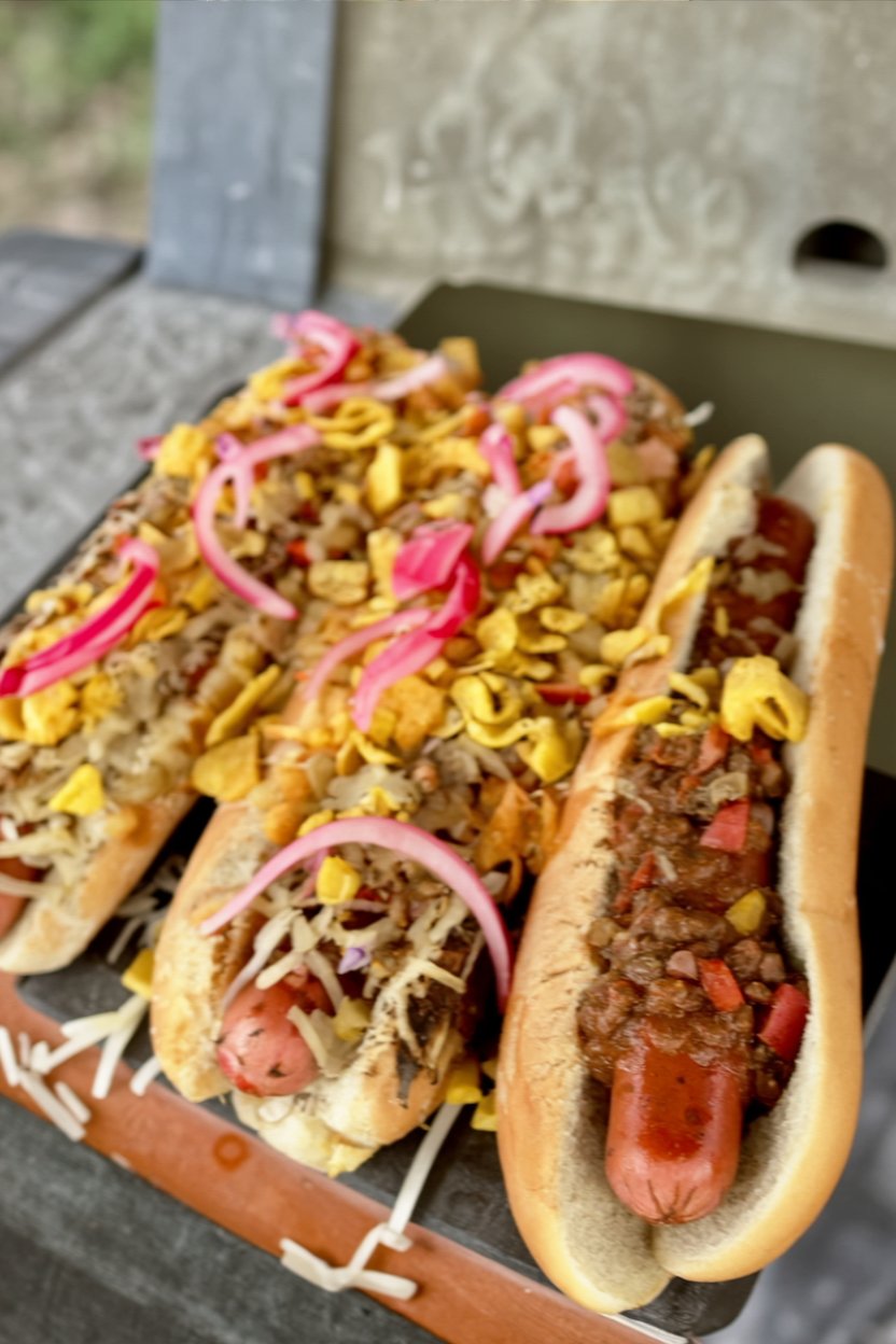 - Topping Bar: Set out the toppings—cheese, Fritos, pickled onions, plus diced jalapeños, sour cream, and fresh cilantro—and let guests build their own perfect coney.