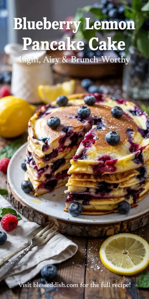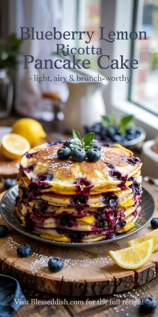 This Blueberry Lemon Ricotta Pancake Cake transforms humble breakfast staples into an unforgettable brunch centerpiece—layers of citrus‑kissed ricotta pancakes, creamy mascarpone, and juicy berries crowned with a lemon‑maple glaze. Ready to wow your guests or treat yourself to something special? Visit BlessedDish.com for more inventive breakfast and dessert recipes. If you try this pancake cake, please leave a ★★★★★ review, share your creation on Instagram with #BlessedDish, and subscribe for weekly culinary inspiration delivered straight to your inbox. Enjoy every tender, tangy, berry‑filled bite!