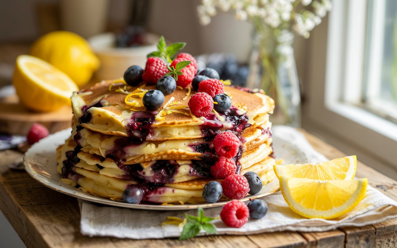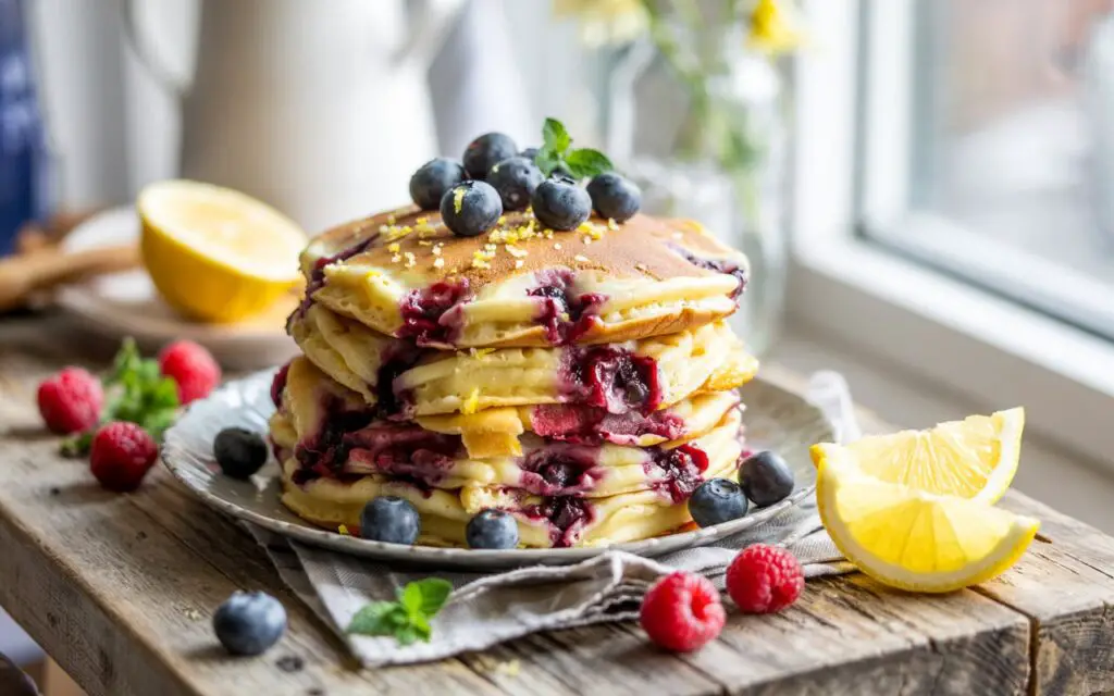 This recipe layers six to eight pancakes—each flavored with bright lemon and creamy ricotta—into a cake that slices beautifully. Between each pancake, a smear of whipped mascarpone adds richness, while fresh blueberries provide tender contrast. Finished with a glossy lemon‑maple glaze and a sprinkling of lemon zest and extra berries, this Pancake Cake brings both visual drama and unforgettable flavor to your table. Whether you’re celebrating a birthday brunch, Mother’s Day, or simply craving something extraordinary for morning coffee, this Blueberry Lemon Ricotta Pancake Cake will delight every guest.