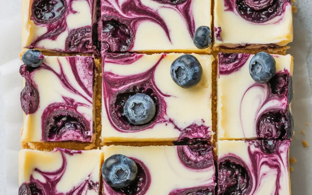 Once you master the swirl technique and the balance of sweetness, you can adapt the recipe with different fruit sauces, crust types, or flavorings. Chill the bars thoroughly for clean slicing, and watch how each piece reveals the marbled interplay of purple and white. Perfect for family gatherings, potlucks, or a sweet treat in your lunchbox, these cheesecake bars deliver the decadent texture of a full cheesecake with the ease and portability of a bar—a best-of-both-worlds dessert that’s sure to impress both the eyes and the taste buds.