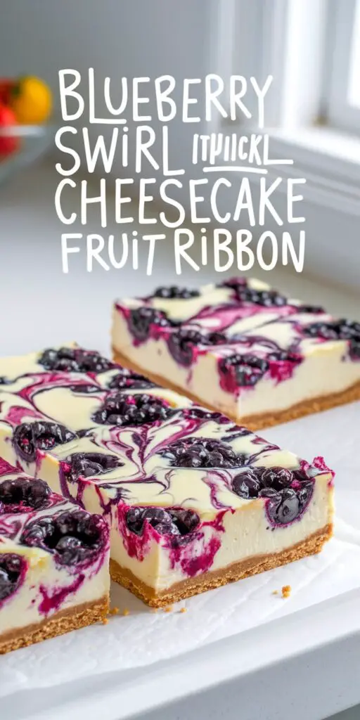 Cheesecake ranks among the most beloved desserts for its velvety texture, tangy cream cheese base, and near-infinite adaptability. Meanwhile, fruit swirls add pockets of freshness and color that cut through the richness. Blueberry Swirl Cheesecake Bars – Creamy Fruit Ribbon harnesses that synergy in an easy-to-serve bar format. By layering a cookie crust, a creamy cheesecake center, and a luscious blueberry ribbon, you create squares that highlight both the indulgence of cheesecake and the bright tang of ripe blueberries.