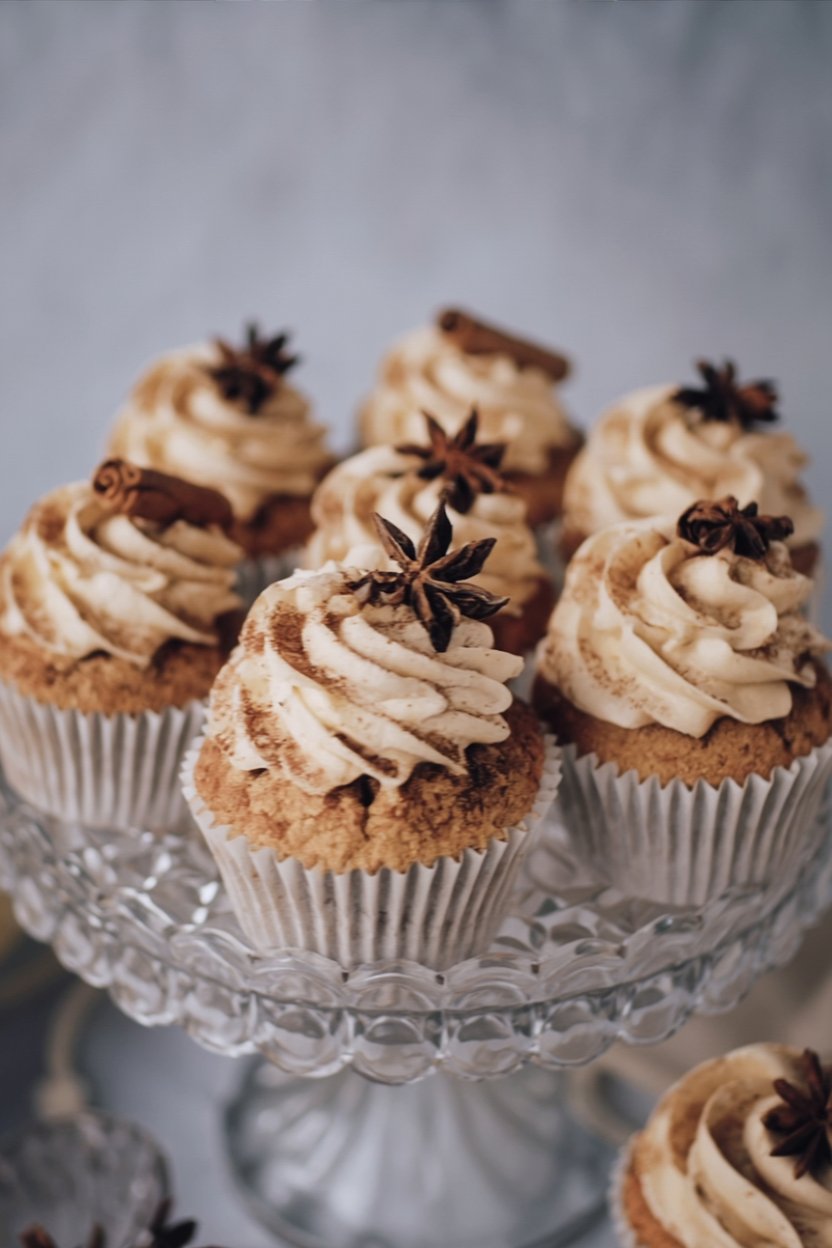 - Garnishing: For an extra touch of elegance, top each cupcake with a whole star anise or a cinnamon stick (just remind guests they are for decoration!).
