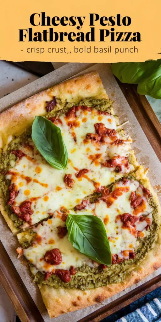 Cheesy Pesto Flatbread Pizza – Crisp Crust, Bold Basil Punch distills the essence of a speedy, flavor-packed meal into a single, easy approach. The synergy of herby pesto, melted cheese, and a crunchy flatbread platform ensures each slice bursts with garlicky, basil-infused goodness. Whether served as a quick weeknight dinner, a shareable appetizer, or a star at a pizza party, it’s a dependable go-to for minimal effort and maximum taste.