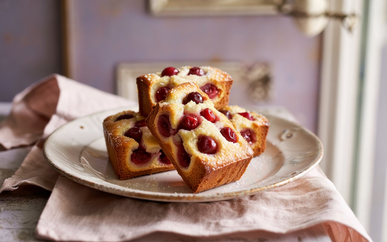 Gently fold the halved fresh cherries into the batter, ensuring an even distribution without breaking the fruit. - Bake the Financiers: