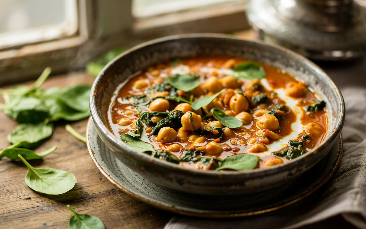 This Chickpea & Spinach Curry was born from a desire to create a meal that was both wholesome and indulgent—a dish that champions the richness of plant-based ingredients while evoking the traditional flavors of a classic curry. Inspired by my travels through South Asia and my ongoing exploration of vegan cooking, I wanted to design a recipe that combined the hearty texture of chickpeas with the vibrant freshness of spinach, enveloped in a robust spice blend. The result is a curry that is both comforting and energizing—each ingredient meticulously chosen to work in harmony, delivering warmth and nourishment with every bite.