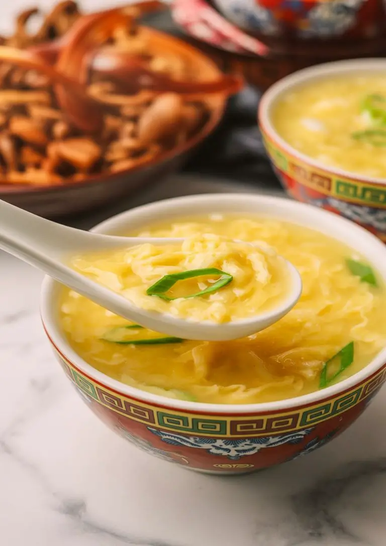 • Fusion Twist: Top with a swirl of coconut milk and fresh cilantro for a Thai-inspired take on egg flower soup.