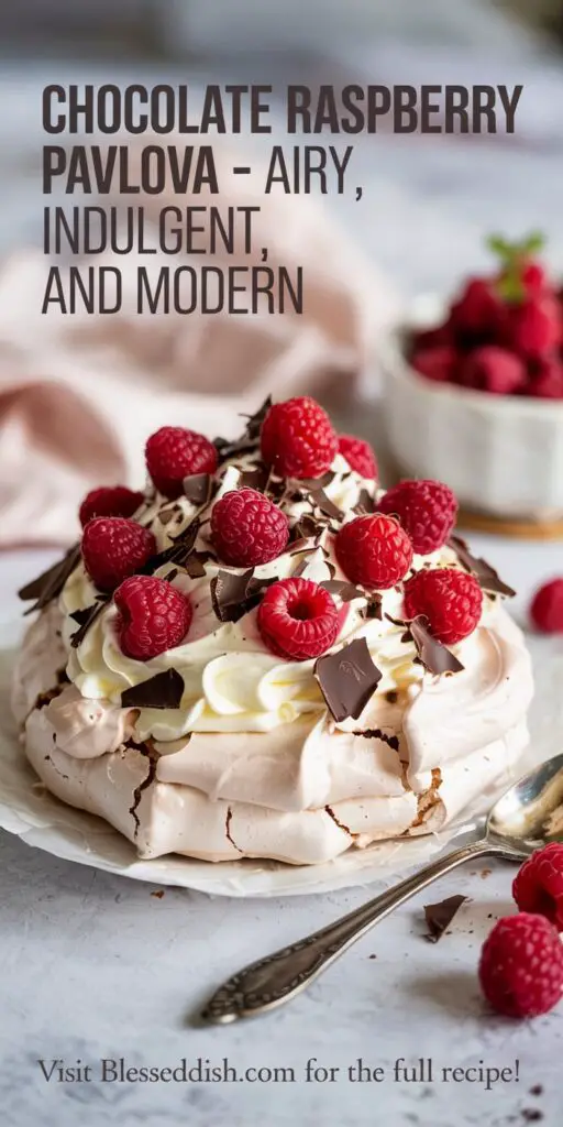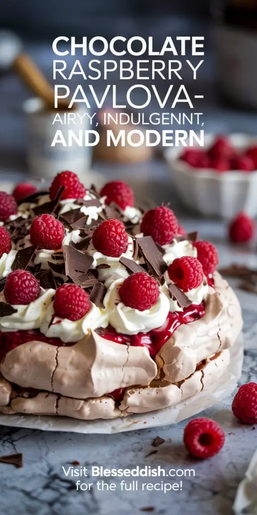 The Chocolate Raspberry Pavlova marries the light elegance of classic meringue with the bold flavors of chocolate and fresh raspberries—offering a dessert that’s both airy and indulgent. With minimal hands-on time and no oven for the filling, you can create a stunning centerpiece that delights every sense. Give this recipe a try, share your creative toppings in the comments, and subscribe for more elevated, data-driven desserts!