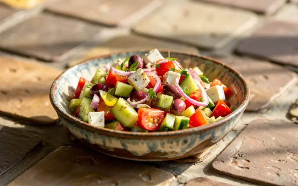 Chopped salads have roots in the Levant and Mediterranean, where farmers and home cooks would dice seasonal produce and toss it with simple dressings. Think Lebanese fattoush or Turkish shepherd’s salad—the emphasis is on letting fresh ingredients shine. This version leans Greek, featuring Kalamata olives and feta cheese, with an oregano- and garlic-infused lemon‑olive oil dressing. The result is a harmonious balance of sweet, savory, tangy, and herbaceous flavors that feels both timeless and invigorating.