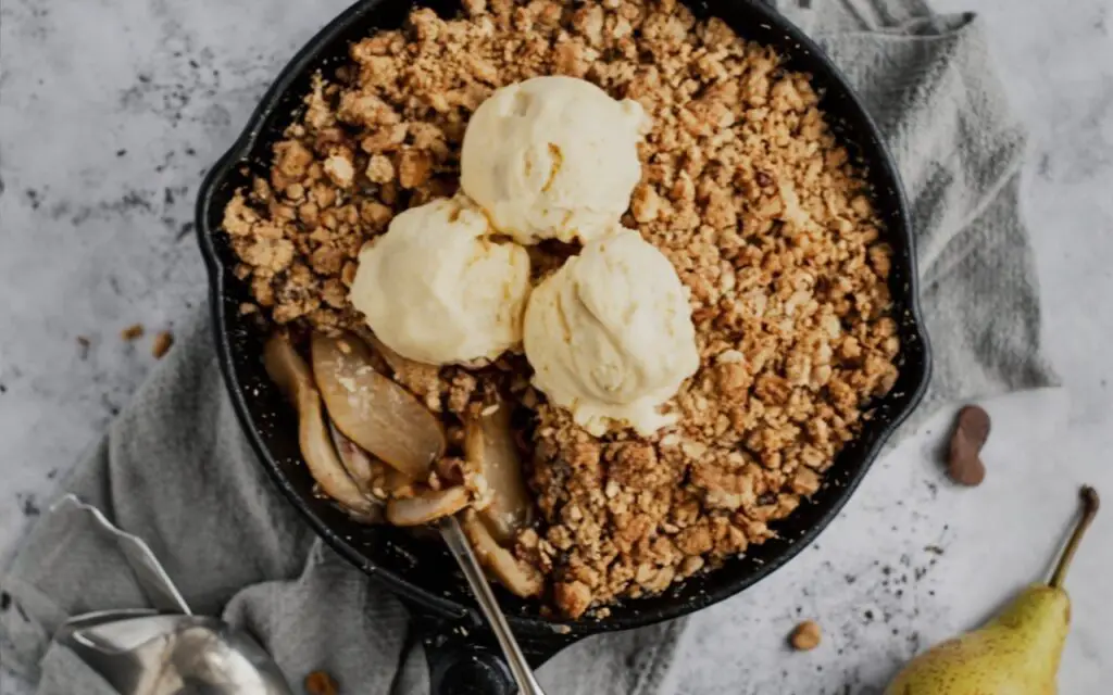 A warm bowl of pear crisp is a thing of beauty on its own, but a simple topping can elevate it to pure dessert perfection.