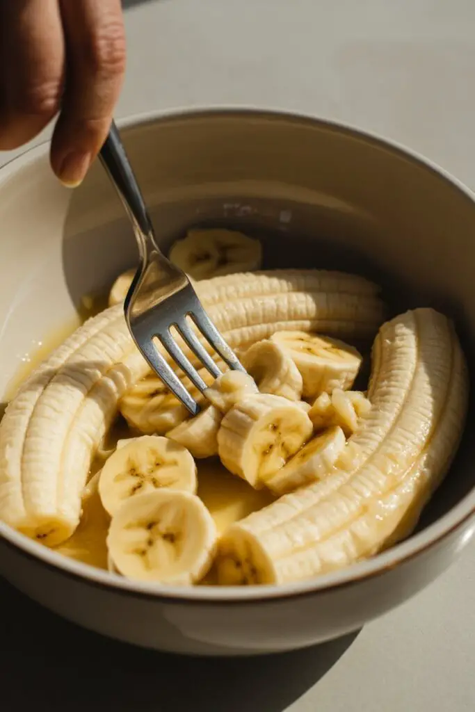 - Mash bananas: In a large bowl, mash 3–4 very ripe bananas until mostly smooth (a few small lumps are fine).
