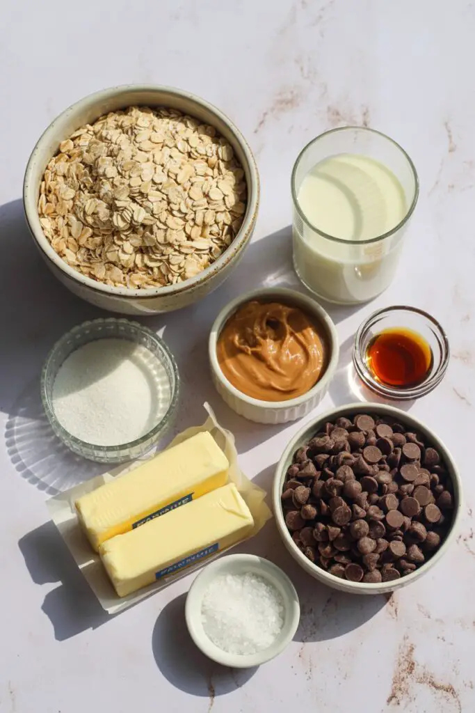 Before you turn on the stove, preparation is crucial because this recipe moves fast once the sugar boils. Measure your 3 cups of quick-cooking oatmeal into a large, heat-proof bowl. Clear a counter space and lay out sheets of wax paper or parchment paper. This ensures you aren’t scrambling to find a spot to drop the hot cookie mixture later.