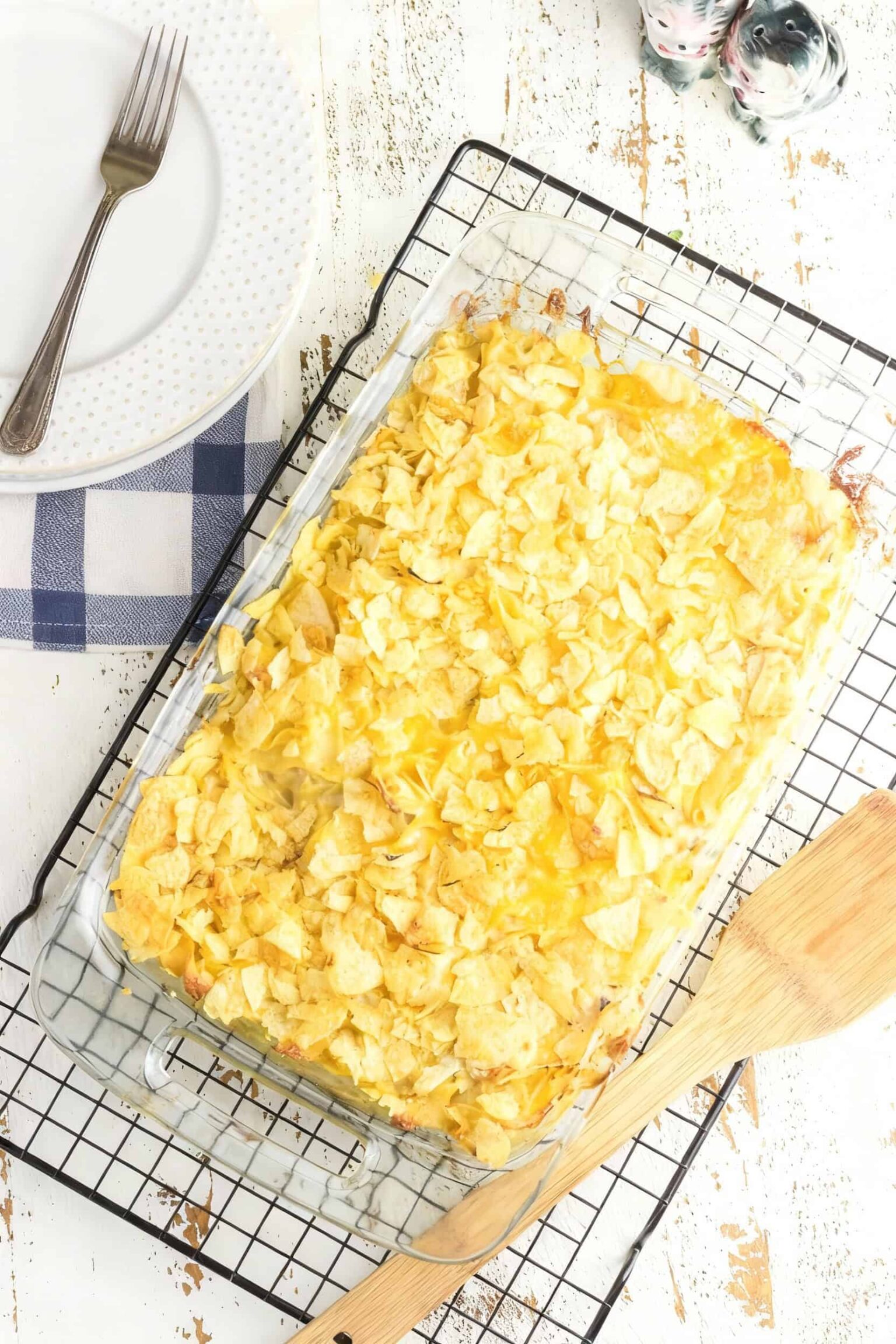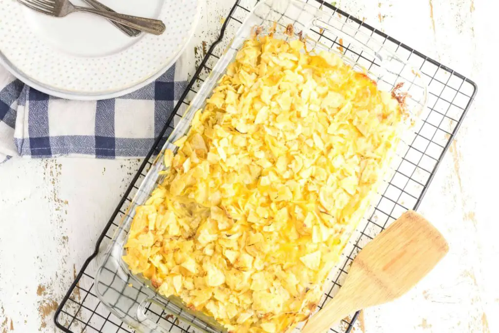 - Make-Ahead: You can assemble the entire casserole (steps 1-4) up to 24 hours in advance. Cover it tightly with foil and store it in the refrigerator. Important: Leave the potato chips off! Add the cheese and chip topping just before baking. You may need to add 5-10 minutes to the baking time since it’s starting from cold.