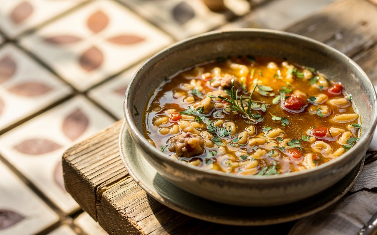 - Starch release from mini pasta → gentle thickening, silky mouthfeel.