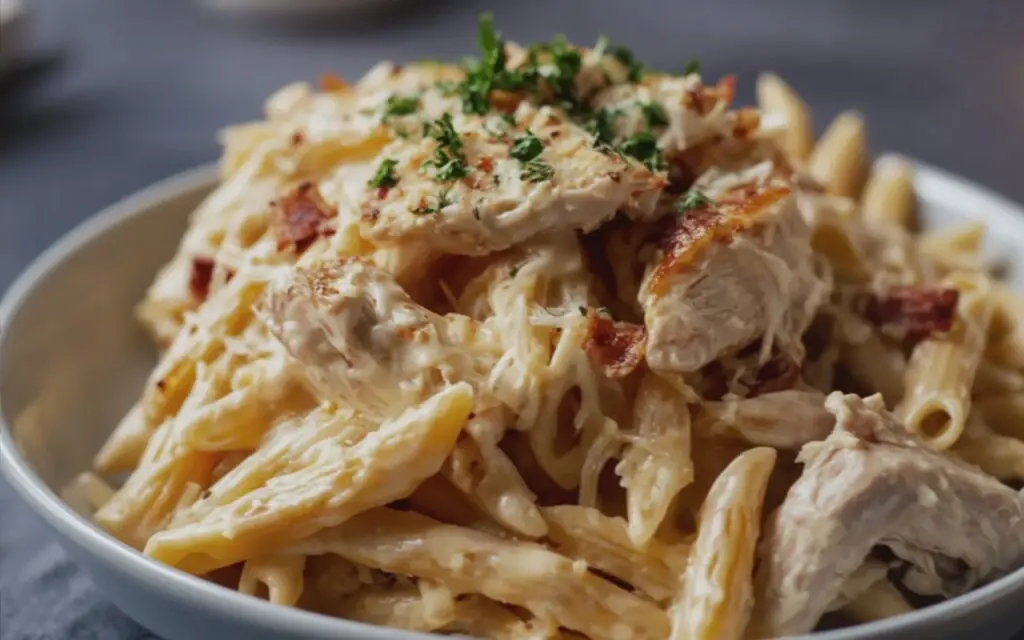 Ultra-creamy ranch, cheddar, and bacon chicken pasta that comes together fast—perfect for busy weeknights and guaranteed to be a family favorite.