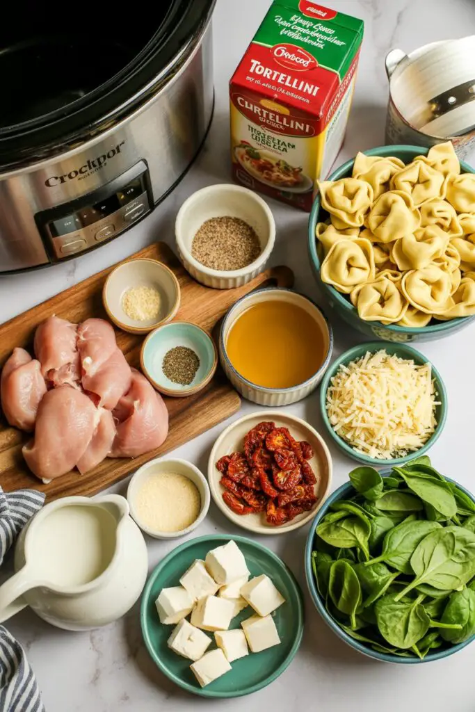 - Ingredients for Crockpot Tuscan Chicken Tortellini
