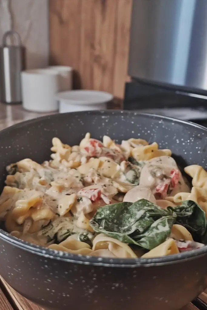 Creamy Crockpot Tuscan Chicken Tortellini (Easy Recipe)