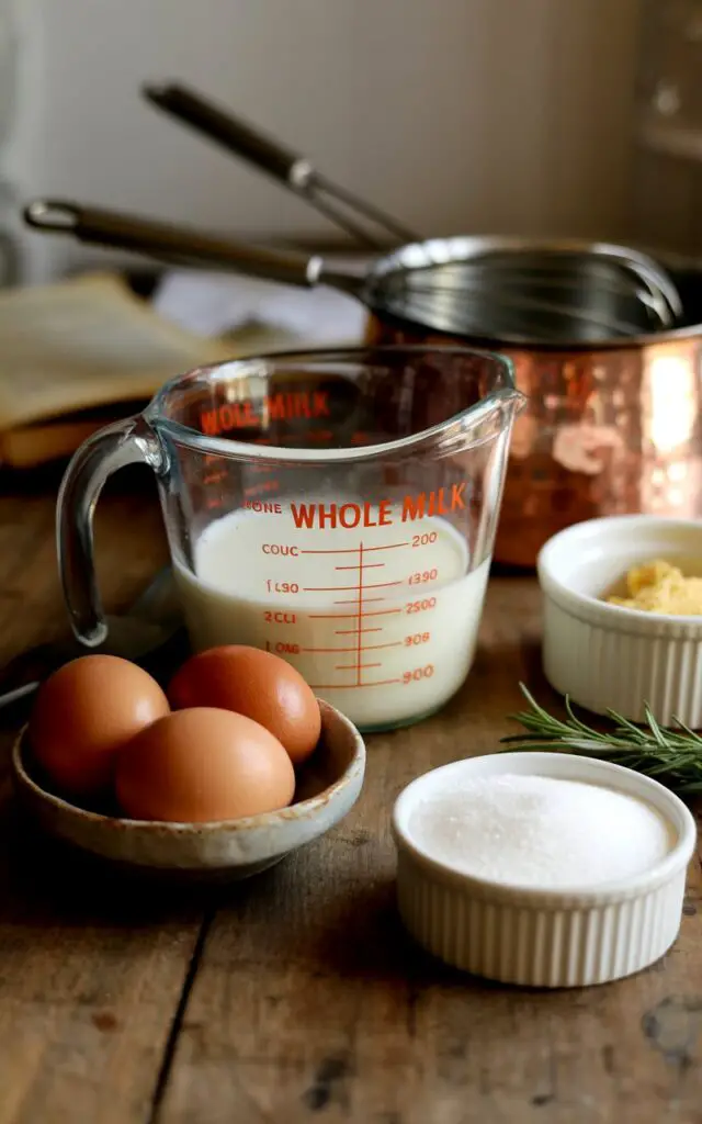 - Cook custard: In a saucepan, whisk milk, eggs, sugar, cornstarch, vanilla, and a pinch of salt. Cook over medium, stirring constantly, 8–10 minutes until thick enough to coat a spoon.
