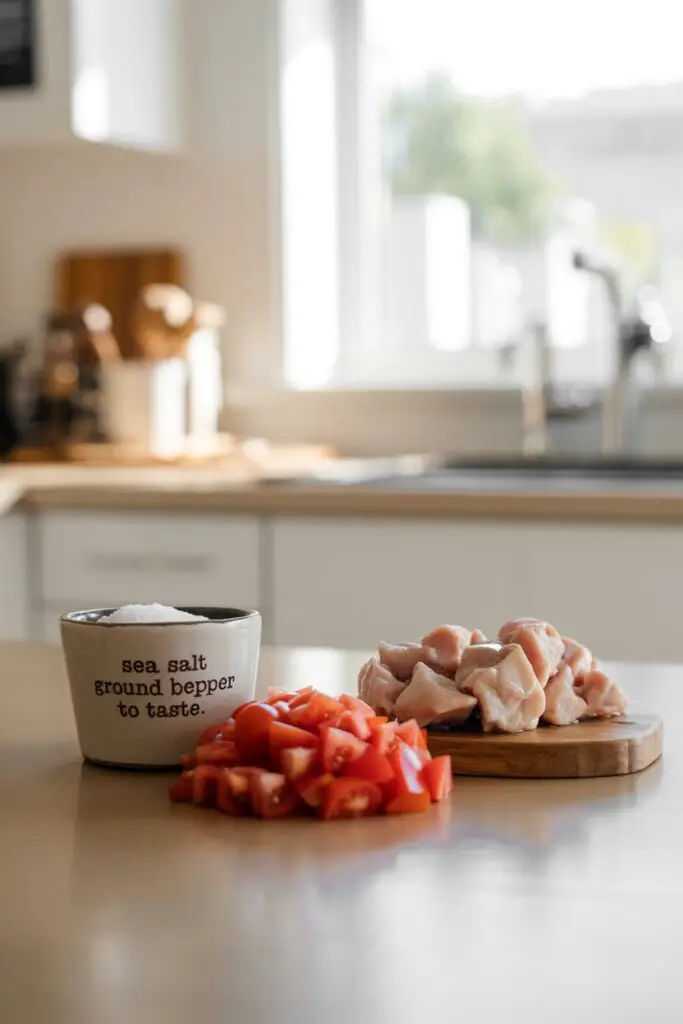 | Boneless, skinless chicken breasts or tenders | 2 lbs, chopped into bite-sized pieces |