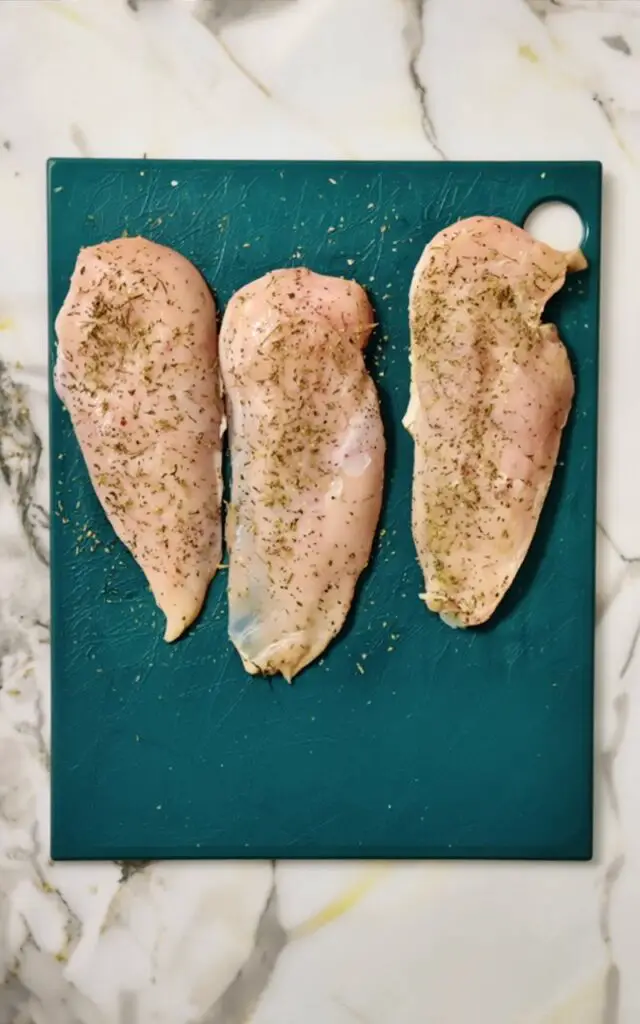 - Tip: If your chicken breasts are very thick, you can also pound them lightly with a meat mallet to ensure uniform thickness.