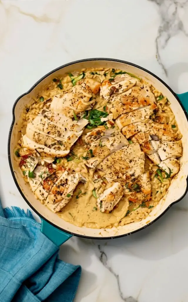 This Lemon Chicken and Rice Skillet proves that you don’t need a pantry full of exotic ingredients or hours of time to create a meal that feels special. It brings together the comfort of a creamy risotto-style dish with the protein-packed benefits of a chicken dinner, all brightened by that irresistible hit of fresh citrus. It is wholesome, hearty, and undeniably delicious.