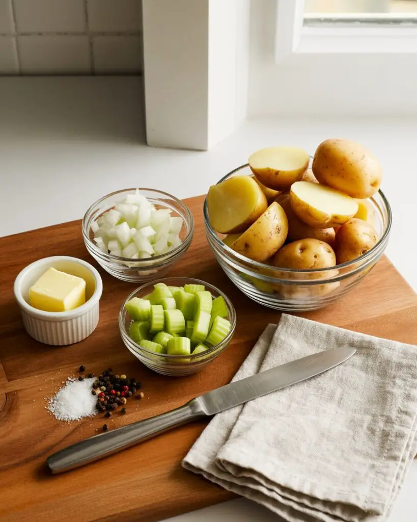 - Sauté the Vegetables: In a large pot or Dutch oven, melt the butter over medium heat. Add the chopped onion and celery, and cook until tender, about 4 to 5 minutes. Season generously with salt and pepper.