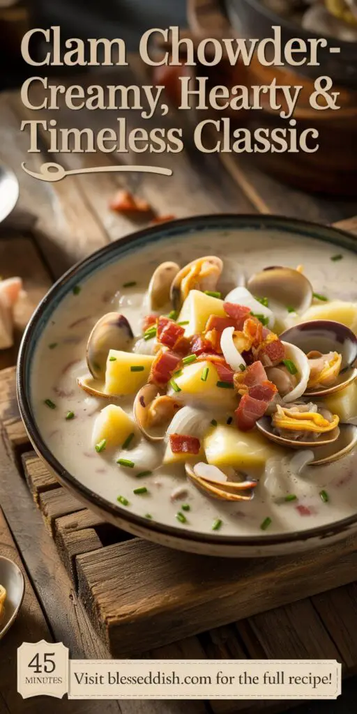 What makes a bowl of New England clam chowder so irresistibly comforting? This New England clam chowder recipe marries tender clams, smoky bacon, and creamy potatoes in a rich broth that’s chock-full of savory, ocean-fresh flavor. Ready in just 45 minutes from prep to table, it’s far quicker than many slow-simmered stews yet delivers the same hearty satisfaction you crave on chilly evenings. By starting with a quick bacon-and-onion sauté, building the base with flour and clam juice, and finishing with plump baby clams and a splash of cream, you’ll uncover how easy it is to nail this iconic seafood chowder at home. Whether you’re serving it as an elegant appetizer or a stand-alone meal, this creamy clam chowder stands out for its perfectly balanced umami, silky texture, and just the right amount of brine from fresh clams and bottled clam juice.