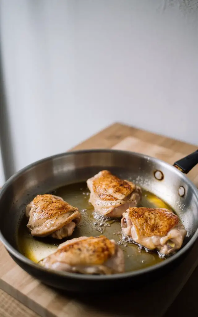 - Crowding the Pan during Searing: If the chicken thighs are touching too much, they will steam instead of sear. Solution: Sear in two batches if your skillet isn’t large enough.