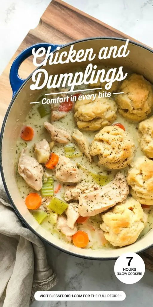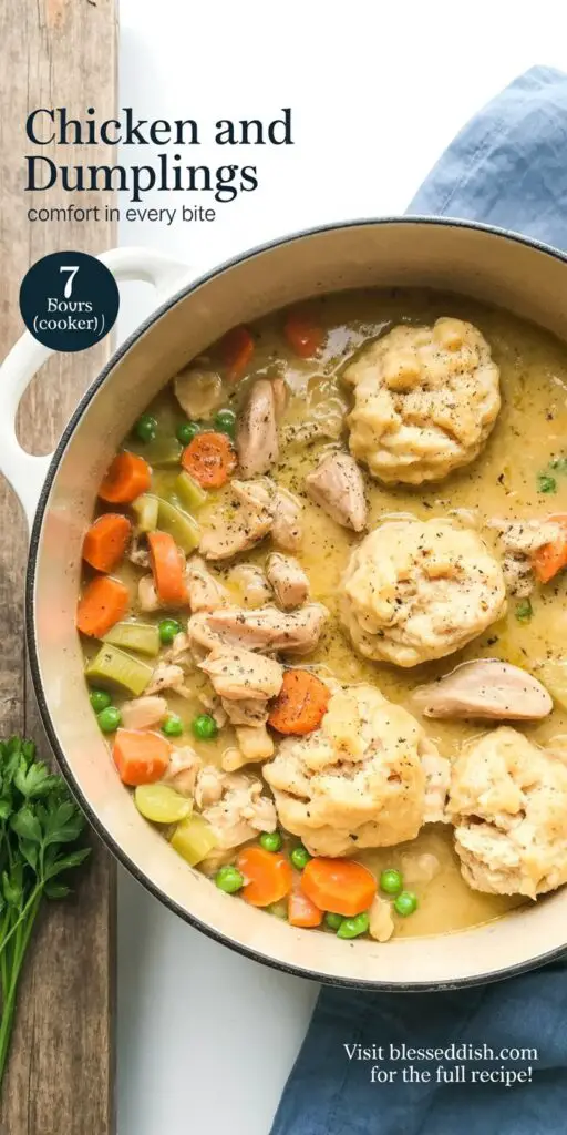 This chicken and dumplings recipe transforms simple ingredients into a bowl of pure comfort, with minimal hands-on time and maximum flavor. Whether you crave a weeknight family dinner or meal-prep magic, let your slow cooker do the work and finish with those fluffy dumplings everyone loves. Once you’ve savored that first bite of tender chicken and soft dumplings floating in creamy broth, share your tweaks—did you add extra herbs or swap meats?—and subscribe for more fuss-free classics delivered right to your inbox.
