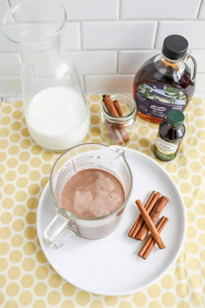 - In a glass or small pitcher, combine 1 cup tiger nut milk with maple syrup, vanilla extract, and ground cinnamon. Stir until the syrup is dissolved.