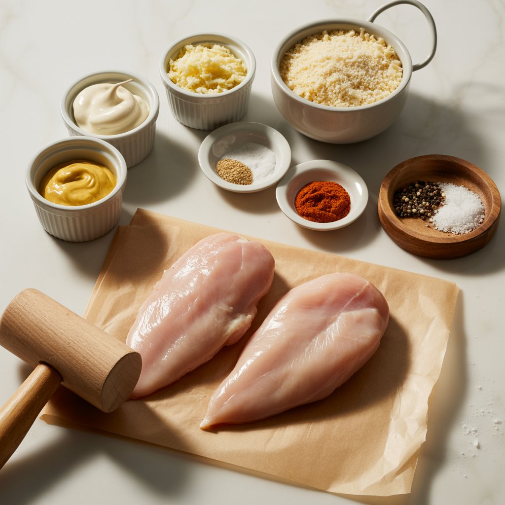 | Boneless, Skinless Chicken Breasts | 2, sliced in half lengthwise | Pounding the chicken to an even thickness ensures uniform cooking. |