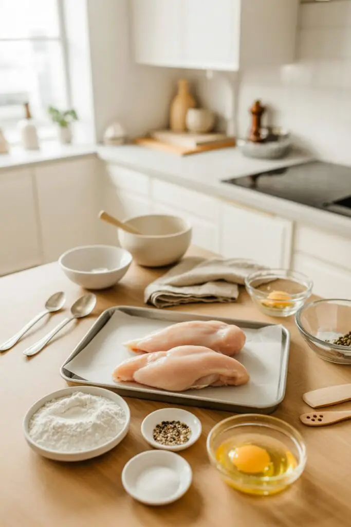 - Preheat Oven & Prep Chicken: Preheat oven to 400°F (200°C). Line a sheet pan with parchment. Place chicken breasts between two sheets of parchment paper and pound to an even ¼-inch thickness. Season both sides with salt and pepper.