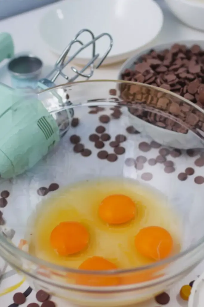 - Mix Batter: In a large bowl, beat the eggs on medium speed until fluffy. Add the sugar and beat until just combined. Add the melted butter, sifted cocoa powder, vanilla, sifted flour, and salt. Mix on low speed only until the batter is just combined.