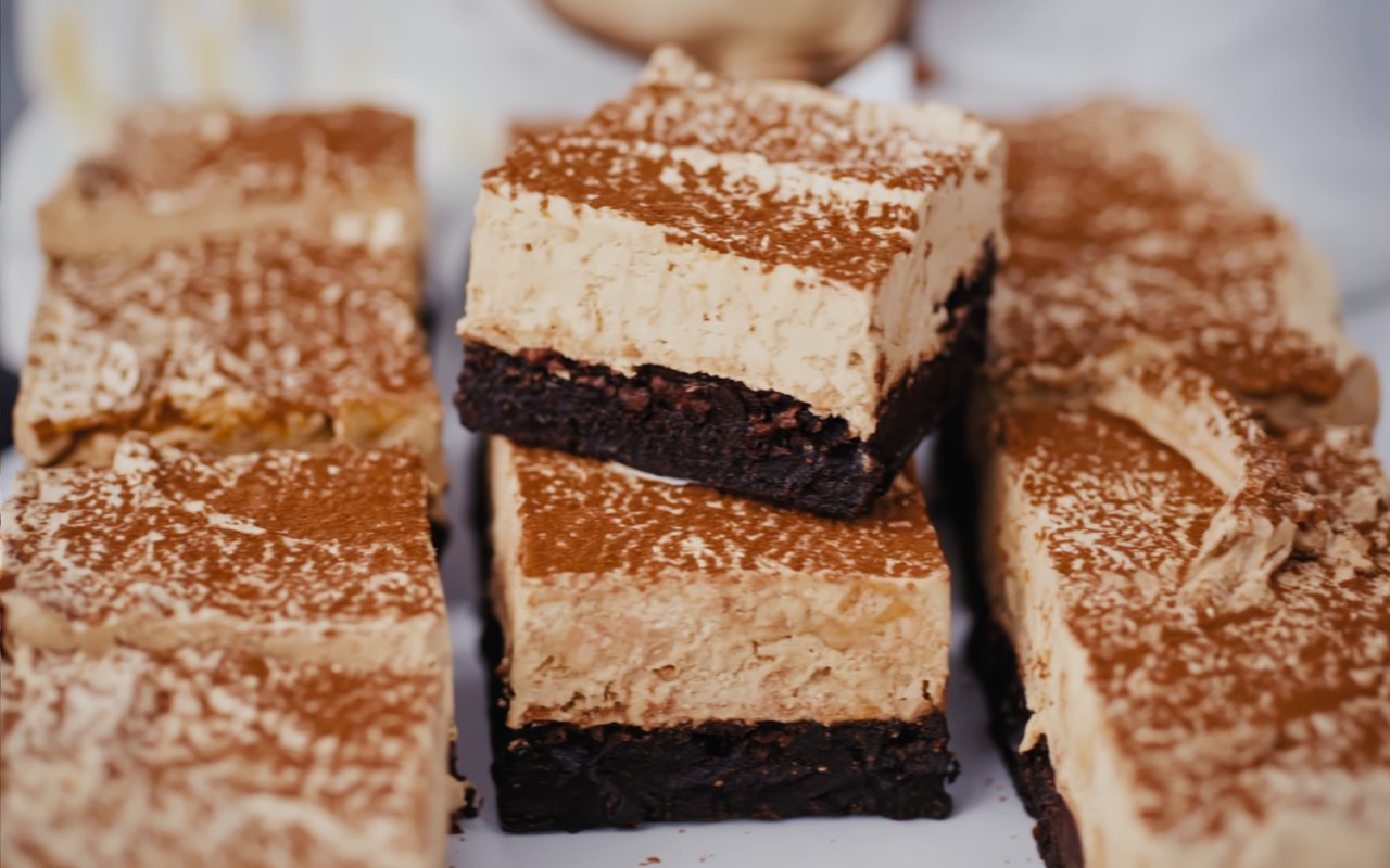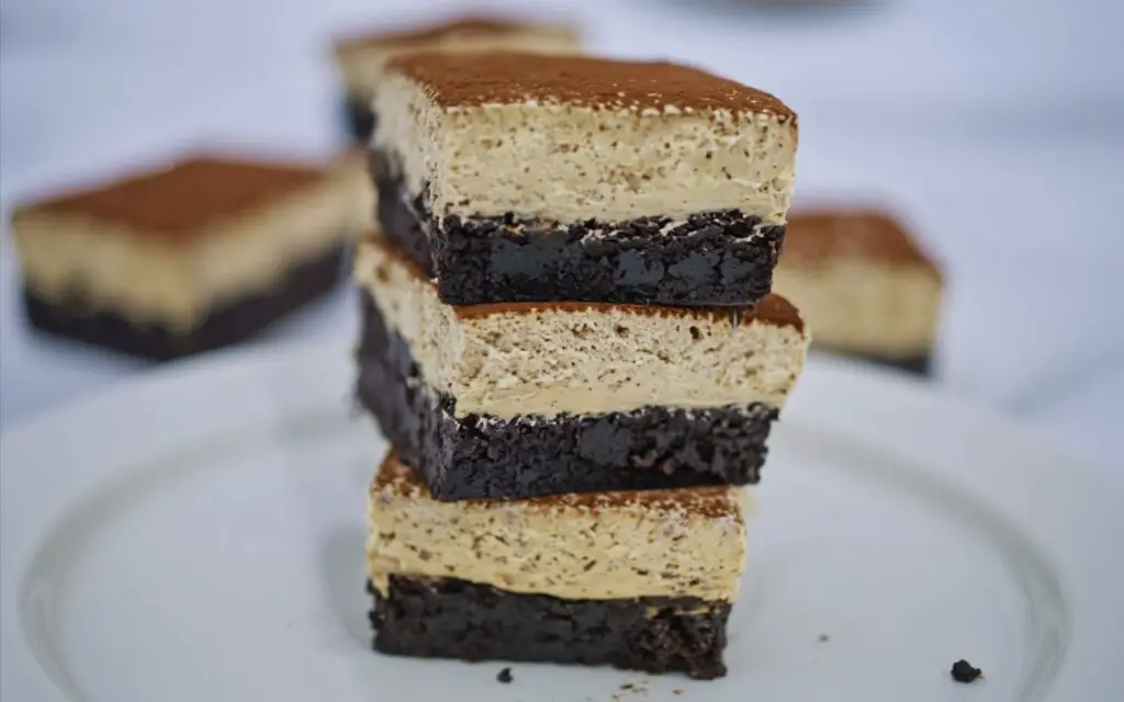 These brownies must be stored in the refrigerator due to the dairy-based mousse.